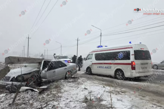 Սպիտակում «Mercedes» բեռնատարը բախվել է երկաթե արգելապատնեշներին