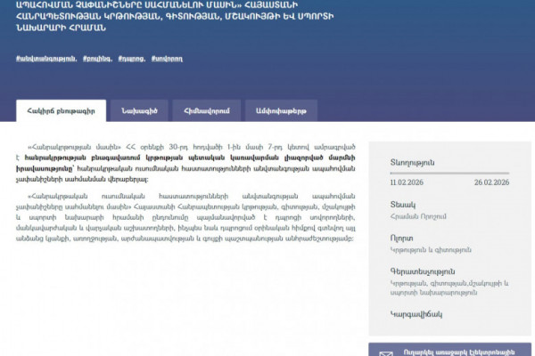 Մասնավորաբար, երեկ ԿԳՄՍ նախարարությունը հրապարակել է «Հանրակրթական ուսումնական հաստատությո...