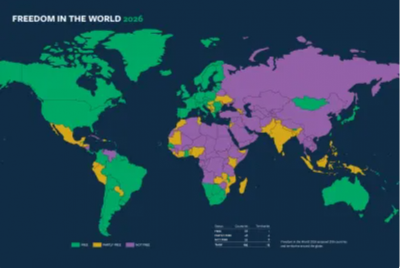Երեկ հրապարակվել է Freedom House-ի «Freedom in the world 2026» տարեկան զեկույցը, ըստ որի՝ Հայաստանը շարունակում է մնալ «մասամբ ազատ» երկիր։ 2026 թվականին Freedom House-ի վարկածով Հայաստանի ժողովրդավարության ինդեքսը 100 հնարավորից ստացել է 54 միավոր։ Ադրբեջանը ստացել է հնարավորից 6 միավոր, Վրաստանը՝ 51, Թուրքիան՝ 32, իսկ Ռուսաստանը՝ 12։