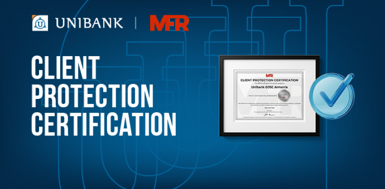 Յունիբանկը հաստատել է իր համապատասխանությունը հաճախորդների պաշտպանության միջազգային չափանիշներին։ Բանկը ստացել է հաճախորդների պաշտպանության հավաստագիր MFR միջազգային վարկանիշային գործակալությունից։