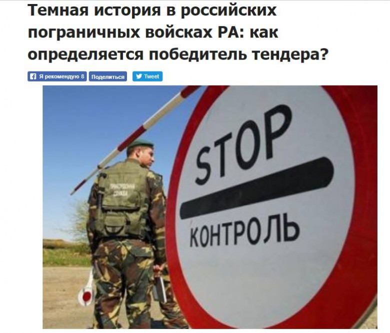 Օրերս ռուսական մամուլն անգամ անդրադարձել է այն թեմային, թե ինչպես էին Հայաստանում կեղծ փաստաթղթի հիման վրա որոշ անձինք իրենց ցանկալի հունով ուղղորդել տենդերի շահելու գործընթացը։ Ռուսական մամուլի անդրադարձը այս թեմային պատահական չէր, քանի որ այդ խայտառակ պատմությունը տեղի է ունեցել ՀՀ-ում տեղակայված ռուսական սահմանապահ զորքերում։