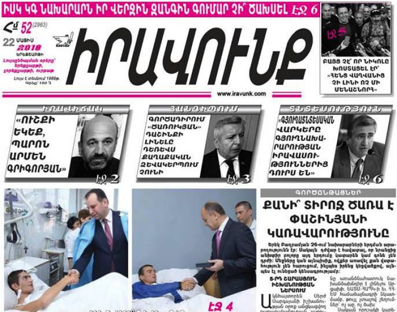 Մասնավորապես «Իրավունք» թերթն ու համանուն կայքն արդեն իսկ հասկանալի կենտրոնից հստակ աշխատում է սևացնելու Ծառուկյան-Փաշինյան համագործակցությունը: Թերթի խմբագրության կարճ ուղեղով, ինչ-որ կեղծ լուրերով հնարավոր է պառակտել համագործակցությունը և հետո էլ վնասել վերոնշյալ գործիչների հեղինակությունները: