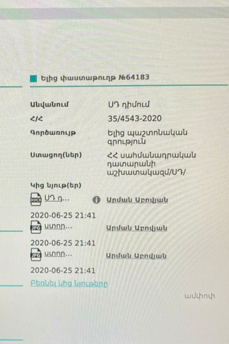 Արման Աբովյանի տեղեկությունը Սահմանադրական դատարանին ուղղված դիմումի վերաբերյալ