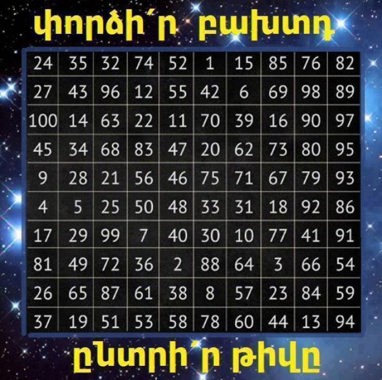 Փակիր աչքերդ և մատդ դիր թվերից մեկի վրա և տես՝ ինչ է սպասվում քեզ
