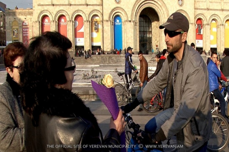 Երևանի քաղաքապետարանն ու «Սիրողական հեծանվասպորտի և հեծանվային զբոսաշրջության ֆեդերացիան» Կանանց միջազգային օրվա` Մարտի 8-ի առիթով հանդես էին եկել յուրատեսակ նախաձեռնությամբ: Հեծանվորդները մայրաքաղաքի փողոցներում կատարած տոնական ուղերթի ընթացքում անցորդ կանանց և աղջիկներին նվիրել են վարդեր՝ Երևանի քաղաքապետարանի շնորհավորական բացիկների հետ միասին: Նախաձեռնությանը միացած կին հեծանվորդները նույնպես ստացել են վարդեր և բացիկներ: