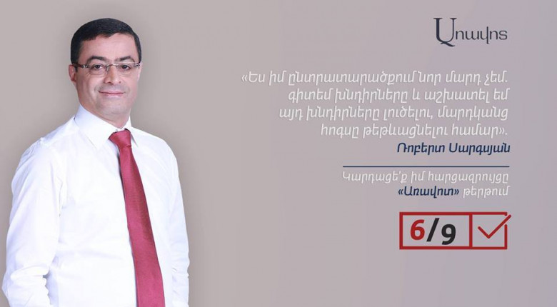 «Ես իմ ընտրատարածքում նոր մարդ չեմ. գիտեմ խնդիրները եւ աշխատել եմ այդ խնդիրները լուծելու եւ մարդկանց հոգսը թեթեւացնելու համար». Ռոբերտ Սարգսյան