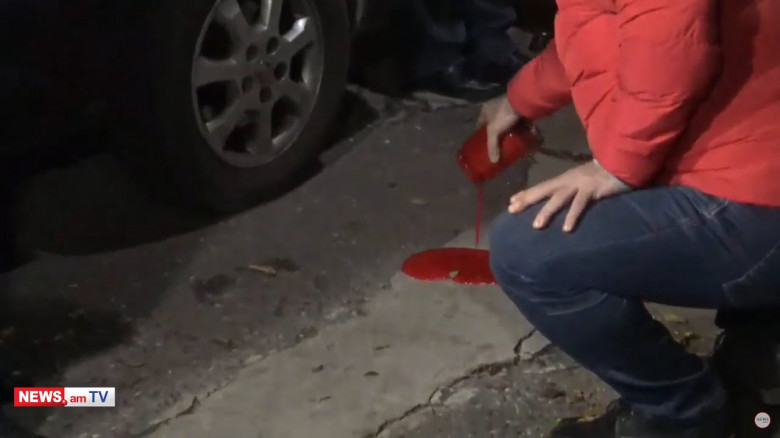 5000 զոհի արյունը սորոսականների ձեռքին է. ցուցարարները կարմիր ներկ լցրեցին «Սորոսի գրասենյակի» մոտ