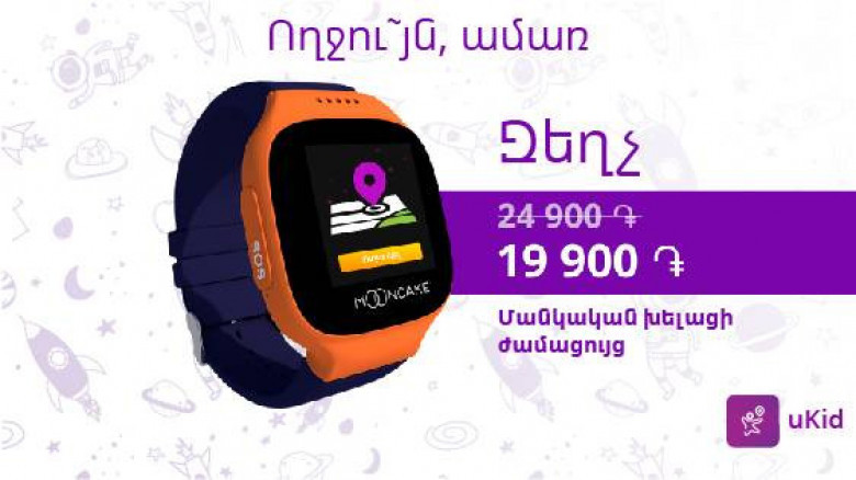 «Ողջու՜յն, ամառ»-ի շրջանակում մինչև հունիսի 30-ը ներառյալ, uKid մանկական հեռախոս-ժամացույցը հնարավոր է ձեռք բերել ընդամենը 19900 դրամով նախկին 24900 դրամի փոխարեն: Այս հատուկ առաջարկից օգտվելու դեպքում մանկական հեռախոս-ժամացույցը կարելի է գնել՝ վճարելով 4900 կանխավճար նախկին 6900 դրամի փոխարեն, և 12 ամիս շարունակ յուրաքանչյուր ամիս uKid խելացի ժամացույցի համար վճարել ընդամենը 1250 դրամ  նախկին 1500 դրամի փոխարեն։