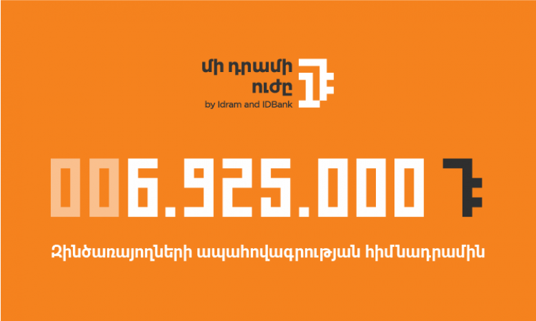 IDBank-ն ու Idram-ը ամփոփեցին «Մի դրամի ուժը» նախաձեռնության հերթական ծրագիրը․ հունիս և հուլիս ամիսների ընթացքում կուտակված «Մի դրամների» ողջ գումարը՝ 6․925․000 ՀՀ դրամ, փոխանցվեց «Զինծառայողների ապահովագրության» հիմնադրամին։