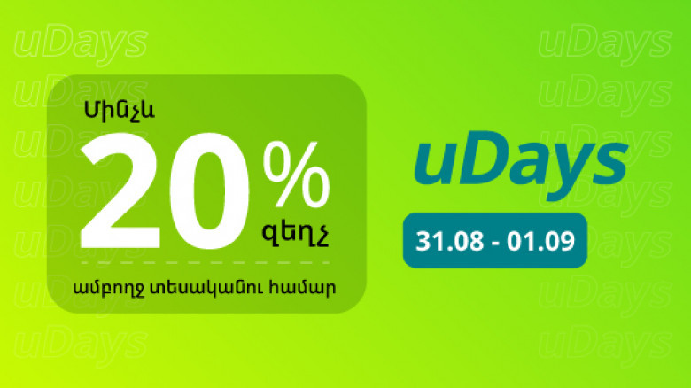 Միայն երկու օր՝ օգոստոսի 31-ին և սեպտեմբերի 1-ին, «uDays» հատուկ առաջարկի շրջանակներում Ucom-ի վաճառքի և սպասարկման կենտրոններում, ինչպես նաև Ucom-ի առցանց խանութում յուրաքանչյուրը կարող է ստանալ մինչև 20% զեղչ սմարթֆոնների և 15%՝ աքսեսուարների ողջ տեսականին գնելու դեպքում: