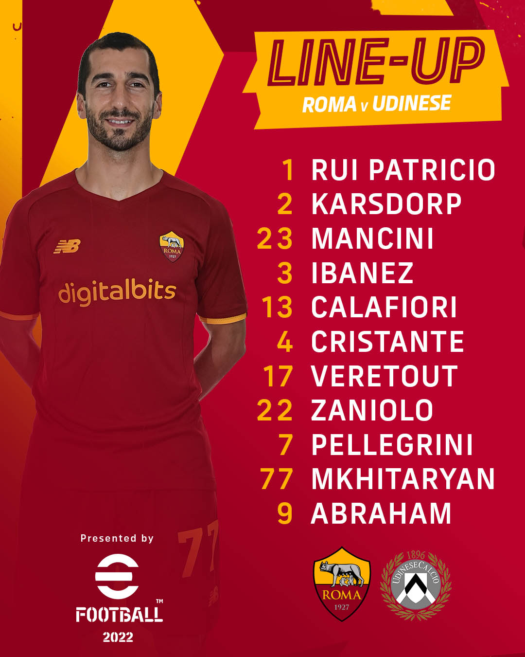 Ռոմայի մեկնարկային կազմը Ուդինեզեի դեմ խաղում, ուղիղ եթեր