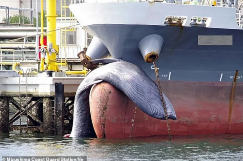 Ճապոնական լցանավը խարիսխ է գցել Կուրասիկի քաղաքի Միզուսիմա նավահանգստում՝ չնկատելով նավի դիմային հատվածում «գամված» սատկած կետի՝ 9,7 մ երկարությամբ մարմինը: