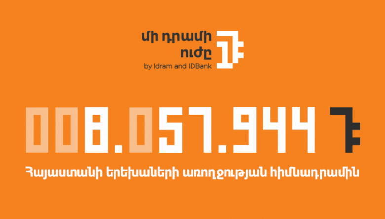 IDBank-ի և Իդրամի «Մի դրամի ուժը» նախաձեռնությունն ամփոփեց հերթական ծրագիրը և 8․057․944 ՀՀ դրամ փոխանցվեց Հայաստանի երեխաների առողջության հիմնադրամին, որը կազմակերպում է կյանքին վտանգ սպառնացող հիվանդություններ ունեցող երեխաների բուժումն արտերկրում։