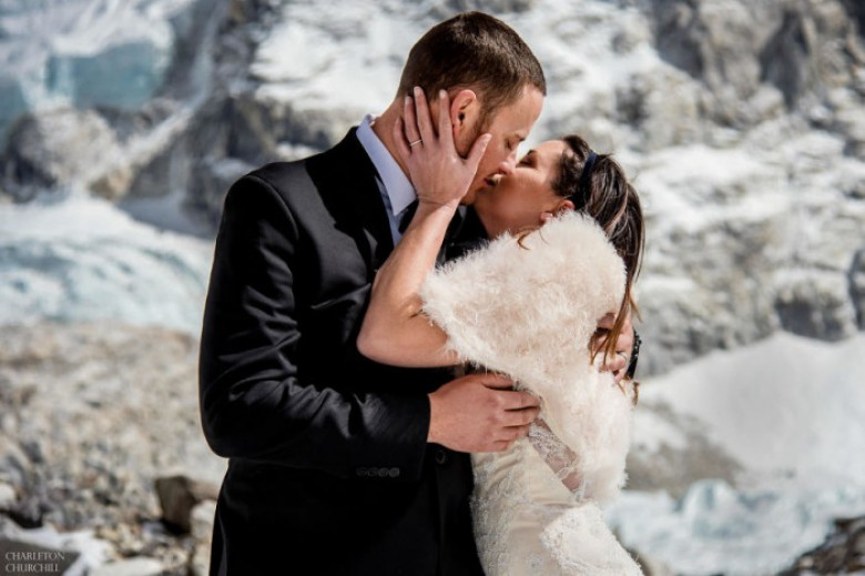 Լուսանկարիչ Չարլթոն Չըրչիլի ուղեկցությամբ սիրահար զույգը 3 շաբաթում բարձրացել է Էվերեստը՝ հասնելով 5.181 մ բարձրության վրա գտնվող Base Camp Everest ճամբարը: Հենց այստեղ էլ սիրահարները սաստիկ ցրտի պայմաններում փոխանակվել են մատանիներով ու հավերժ սիրո խոստում տվել: