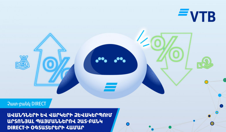 ՎՏԲ-Հայաստան Բանկն առաջարկում է Չատ-բանկ DIRECT-ի օգտատերերին ավանդների և վարկերի ձևակերպում արտոնյալ պայմաններով