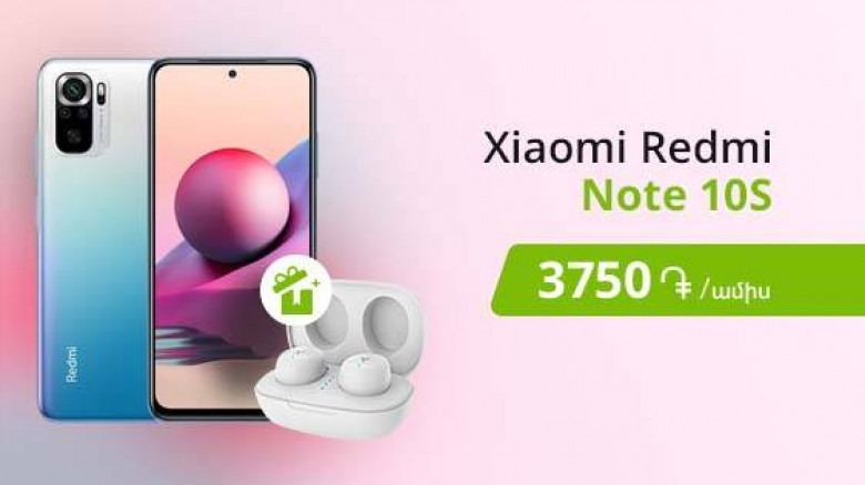 Մինչև մարտի 1-ը ներառյալ «Յուքոմ» ընկերությունն առաջարկում է ձեռք բերել Xiaomi Redmi Note 10S սմարթֆոնն ամսական ընդամենը 3750 դրամով և նվեր ստանալ Accesstyle Flame TWS անլար ականջակալները: