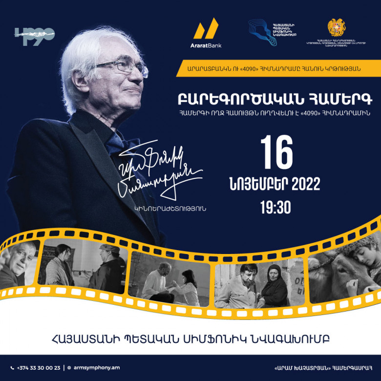 Համերգի ընթացքում հնչելու է մաեստրո Տիգրան Մանսուրյանի հեղինակած երաժշտությունը՝ նվագախմբի կատարմամբ և «Հայֆիլմ»-ից կինոդրվագների ուղեկցությամբ։