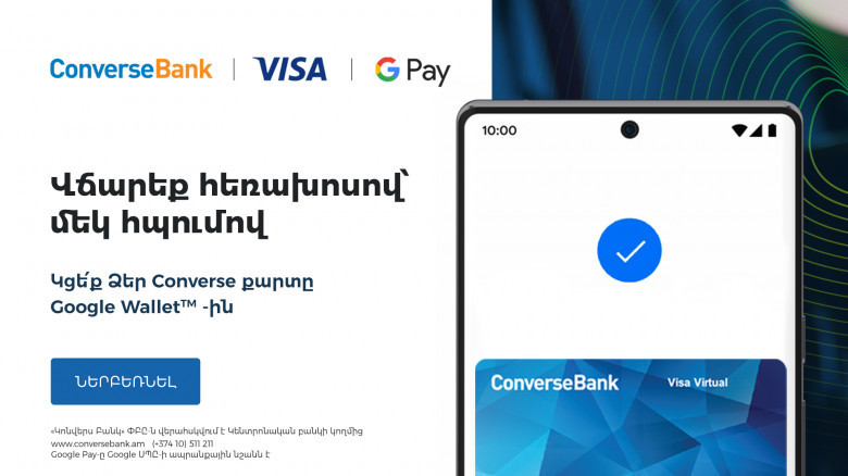 «Կոնվերս Բանկը Google Pay-ի ներդրմամբ ընդլայնում է իր գործիքակազմը և անհպում վճարումների հնարավորություն ընձեռում Հայաստանում հասանելի բոլոր եղանակներով: Google Pay-ով գործարքների անվտանգությունը երաշխավորված է ոչ միայն Կոնվերս Մոբայլ Հավելվածի, այլև այդ համակարգի բազմաստիճան պաշտպանության համակարգի շնորհիվ:»,- ասել են Կոնվերս Բանկում: