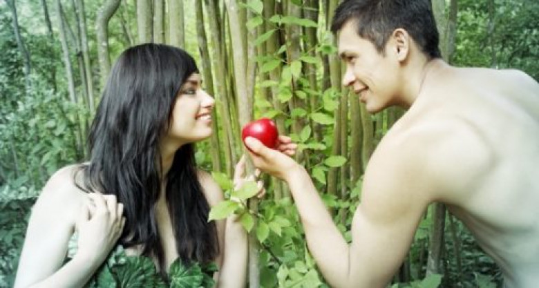 Ադամն ու Եվան իրենց կարիքներն են հոգում այգում, երբ նրանց մոտ է գալիս Աստված ու ասում.