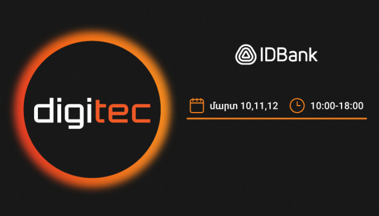 Մարտի 10-ին, 11-ին և 12-ին IDBank-ը մասնակցում է DigiTec էքսպոյին՝ հանդես գալով Իդրամի հետ համատեղ տաղավարում: «Բարի գալուստ ID տաղավար, որտեղ կենտրոնում դու ես»․ այս կարգախոսով են հանդես գալիս IDBank-ն ու Իդրամը՝ ներկայանալով որպես մեկ միացյալ էկոհամակարգ։