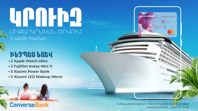 Կոնվերս Բանկը հայտարարում է կանանց միամսյակին նվիրված արշավի մեկնարկի մասին, որի ամենահաջողակ 14 մասնակիցները կստանան արժեքավոր նվերներ՝ Միջերկրական ծովով ճամփորդության ուղեգիր երկու անձի համար, 2 Apple watches Ultra Series, 3 Fujifilm Instax Mini 11, 3 Xiaomi power bank, 5 Xiaomi LED makeup mirror: