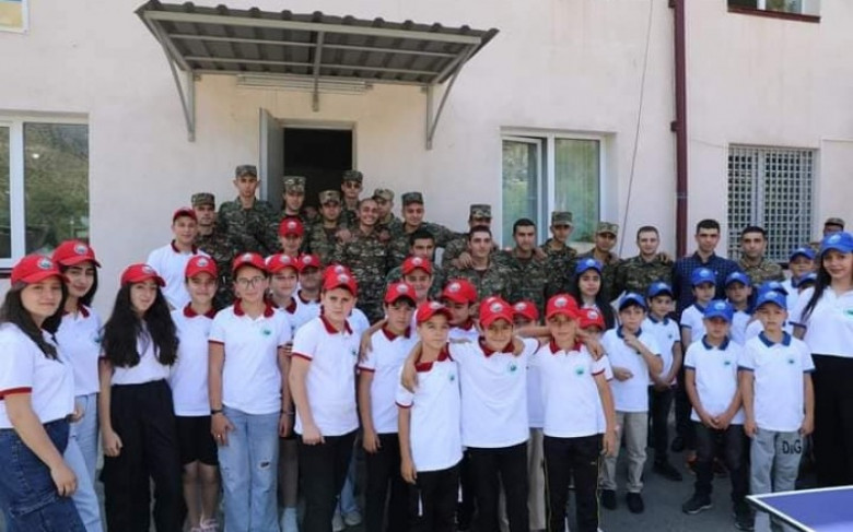 Առավոտյան ճամբարականները մեկնեցին N զորամաս, ծանոթացան զինվորների ծառայողական առօրյային և ամենատարբեր սպորտային նվերներ` գնդակներ, վոլեյբոլի ցանց, թենիսի դաշտ և այլ պարագաներ նվիրեցին զորամասին` զինվորների սպորտային առօրյան ավելի հետաքրքիր դարձնելու համար։