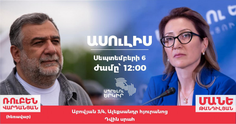 «Ապրելու երկիր» կուսակցության նախագահ Մանե Թանդիլյանը և հասարակական-քաղաքական գործիչ, «Արցախի անվտանգության և զարգացման ճակատ» հանրային շարժման համակարգող Ռուբեն Վարդանյանը(հեռավար) հանդես կգան համատեղ մամուլի ասուլիսով։