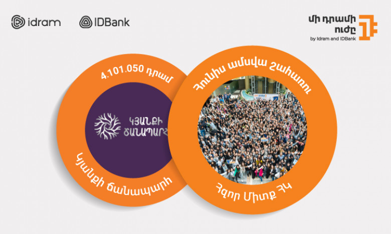 IDBank-ն ու Idram-ն ամփոփում են «Մի դրամի ուժը» նախաձեռնության մայիս ամսվա ծրագիրը, որի շահառուն էպիլեպսիա ունեցող երեխաների ախտորոշմամբ, դեղորայքի ապահովման հարցերով ու բուժմամբ զբաղվող «Կյանքի ճանապարհ» բարեգործական հասարակական կազմակերպությունն էր։ Հավաքված 4․101․050 դրամ գումարը ՀԿ-ն ուղղելու է իր շահառու ընտանիքների հոգսերի թեթևացմանը։