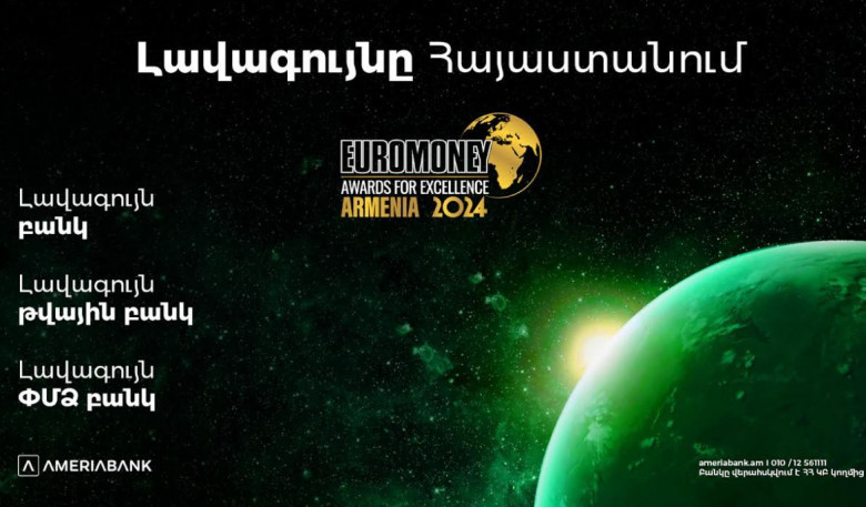 Euromoney միջազգային առաջատար ֆինանսական պարբերականը Լոնդոնում կայացած մրցանակաբաշխության ժամանակ Ամերիաբանկին շնորհել է «Գերազանցության մրցանակ»՝ որպես 2024 թ. լավագույն բանկը Հայաստանում։ 2011թ․ ի վեր Ամերիաբանկը 10-րդ անգամ է արժանանում այս հեղինակավոր մրցանակին։
