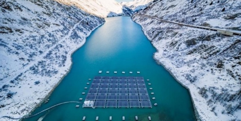 Շվեյցարիան իրականացրել է ֆոտոգալվանային մեծ նախագիծ Ալպերում տեղադրելով լողացող արևային էլեկտրակայան մեծ քանակությամբ վահանակներով «մաքուր» էներգիա արտադրելու համար։ Նախատեսվող ջրամբարը գտնվում է ծովի մակարդակից մոտ 1810 մ բարձրության վրա։ Կան 35 հարթակներ երկկողմանի արևային մարտկոցներով, որոնք զբաղեցնում են ջրամբարի մակերեսի մոտ 2 %-ը։ Լողացող հարթակները լինում են ջրի մակերեսին երկար ժամանակ՝ հունիսից դեկտեմբեր: Այդ պահին ջրամբարը լցվում է ջրով ձյան հալման պատճառով։ Հունվարից մայիս ընկած ժամանակահատվածում կայանը գտնվում է հատակին, երբ ջուրն իջնում ​​է: