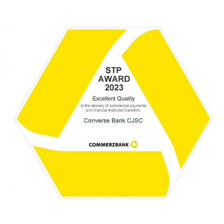 Կոնվերս Բանկն արդեն հինգերորդ անգամ արժանանում է Commerzbank AG բանկի որակի գերազանցության «STP Excellence Award» հեղինակավոր մրցանակին: Այն Բանկին է շնորհվել SWIFT համակարգով իրականացվող միջազգային փոխանցումների կատարողական բարձր մակարդակի ապահովման համար: