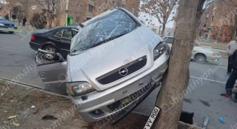 Արմավիրում բախվել են «Mercedes»-ը ու «Opel»-ը. վերջինն էլ մասամբ կողաշրջված բախվել է ծառին. Shamshyan