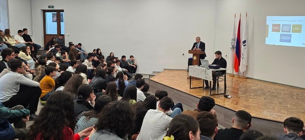 Արդյունաբերության փորձագետ(Կանադա) Թերենս (Սրապ) Օրթսլանը «Հանքարդյունաբերության և մետաղների սկզբունքները. անցյալ, ներկա և ապագա» թեմայով դասախոսության ընթացքում ներկայացրեց աշխարհում գոյություն ունեցող հանքերի, դրանց տեսակների և ներկայացրեց ոլորտի հետագա զարգացման տեսլականը։ Ներկաները խիստ զարմացան՝ տեղեկանալով, որ ԱՄՆ-ում բժշկական սխալներից տարեկան մահանում է մոտ 35 հազար մարդ, իսկ հանքարդյունաբերությունում առավելագույնը պատահում է 80 մահվան դեպք,որոնց մեծ մասը տեղի է ունենում անվտանգության կանոնները չպահպանելու հետևանքով։ Այդ է պատճառը, որ ԶՊՄԿ-ում աշխատանքի անվնագությանը տրվում է առավելագույն նշանակություն և պահվում է  խիստ ուշադրության ներքո։