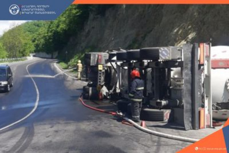 Պարզվել է, որ Դիլիջան-Երևան ավտոճանապարհի 5-րդ կմ-ին հեղուկ գազ տեղափոխող «Iveco» մակնիշի կցորդիչով բեռնատարը կողաշրջվել է․ առկա է դիզելային վառելիքի արտահոսք։