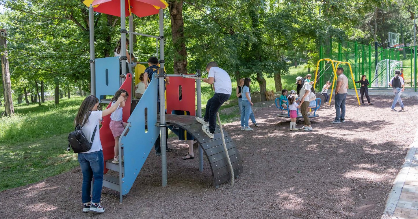 Մարզահրապարակը հագեցած է նորագույն մարզասարքերով՝ հարմարեցված նաև  շարժասայլակով տեղաշարժվող անձանց համար, ինչը համապատասխանում է ՄԱԿ-ի Կայուն զարգացման 3-րդ (Ամուր առողջություն և բարեկեցություն) և 10-րդ (Անհավասարությունների կրճատում) նպատակներին։