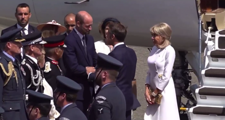 Ֆրանսիայի նախագահին ու նրա տիկնոջն օդանավակայանում դիմավորել են արքայազն Ուիլյամը և նրա կինը՝ Ուելսի արքայադուստր Քեյթը: