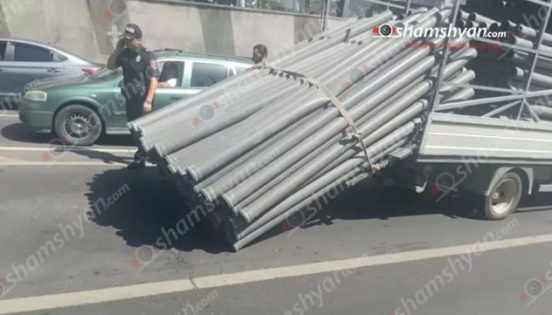 Արտակարգ դեպք՝ Երևանում, ջրախողովակներ տեղափոխող «Ford»-ի վրայից մի կապոց մասամբ ընկել է. Shamshyan