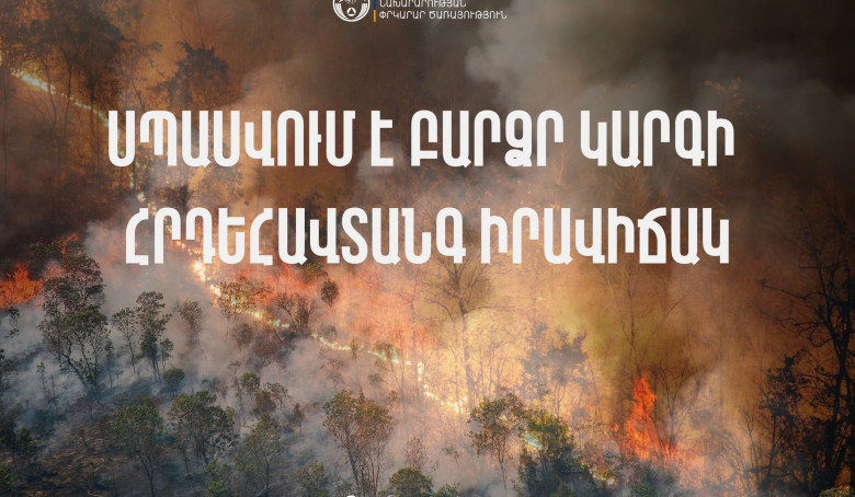 «Հիդրոօդերևութաբանության և մոնիթորինգի կենտրոն» ՊՈԱԿ-ից տեղեկացնում են, որ օգոստոսի 11-15-ն Արարատյան դաշտում, Վայոց ձորի, Արագածոտնի և Կոտայքի նախալեռներում, Սյունիքի հովիտներում և Երևանում սպասվում է բարձր կարգի հրդեհավտանգ իրավիճակ: