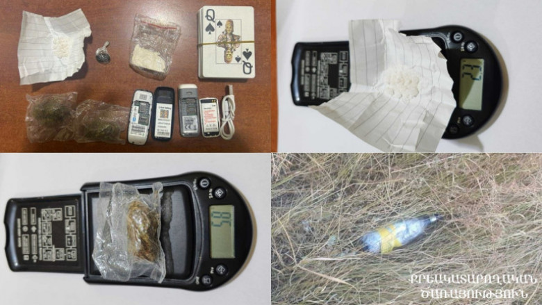 Տարայում առկա են եղել 2 բջջային հեռախոս, լիցքավորման լար, գործարանային արտադրության խաղաքարտեր, ինչպես նաև թմրամիջոցների նմանվող, ընդհանուր 18․2 գրամ տարբեր զանգվածներով փաթեթներ։