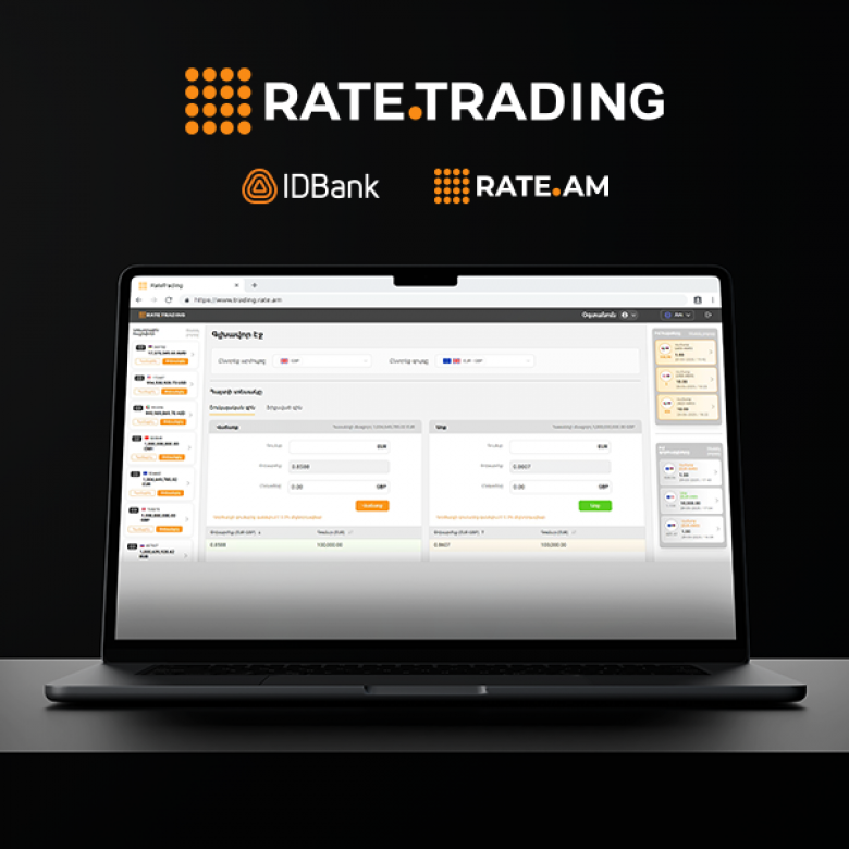 Популярная площадка Rate.am и IDBank объявляют о запуске нового цифрового сервиса, предназначенного для купли-продажи валют быстро, удобно, выгодно- платформу Rate.Trading. Передовое решение позволяет как физическим, так и юридическим лицам безопасно осуществлять сделки онлайн, используя самые выгодные рыночные курсы, формируемые на основе спроса и предложения участников платформы.