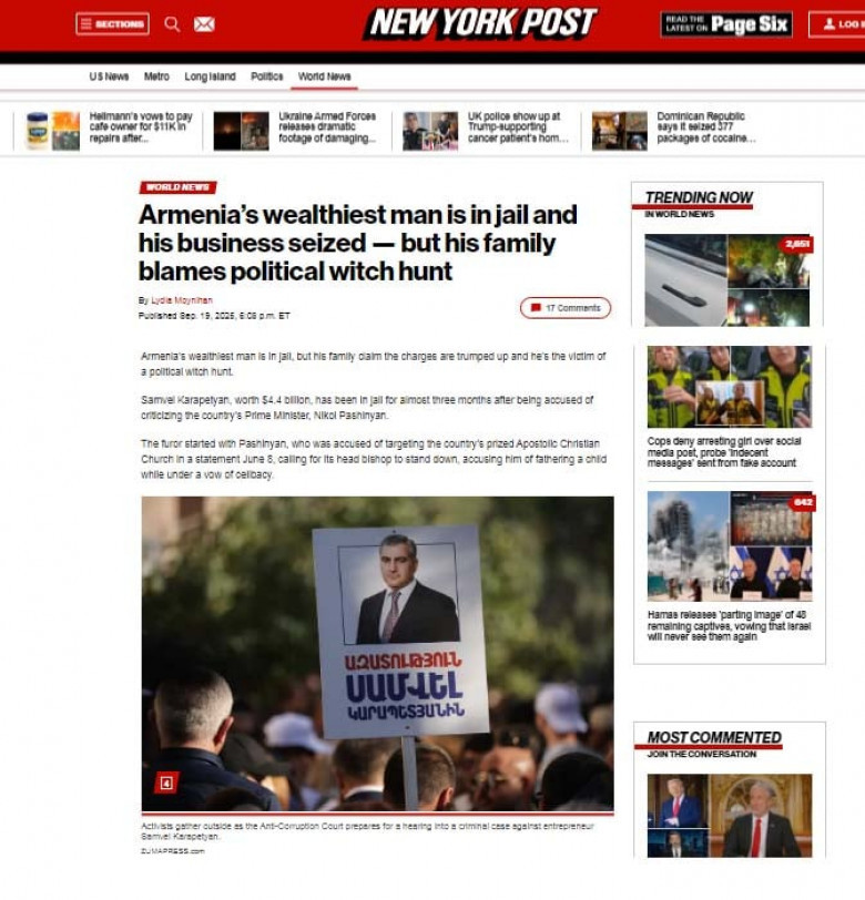 Ամերիկյան հայտնի ու, որ պակաս կարևոր չէ, լայն տարածում ունեցող «Նյու Յորք փոստը» բավականին հանգամանորեն անդրադարձել է Հայաստանում խոսքի ազատության և հակադեմոկրատական առումներով տիրող խայտառակ իրավիճակին: