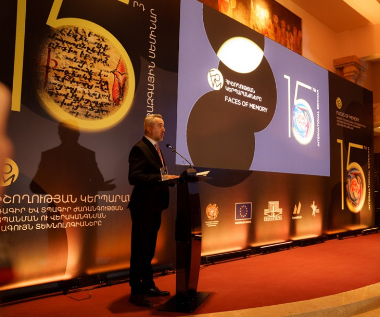The 15th international seminar, “Faces of Memory: Newest Technologies for Preservation and Restoration of Manuscript and Printed Heritage”, has officially been launched at the Matenadaran, with the co-financing of AraratBank and the support of the RA Ministry of Education, Science, Culture and Sports, as well as the Delegation of the European Union to Armenia.