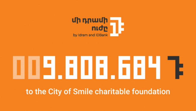 IDBank and Idram have summed up the next program of “The Power of One Dram" initiative․ The entire amount of "one drams" gathered during January and February - AMD 9,808,684 was transferred to the "City of Smiles" charitable foundation.