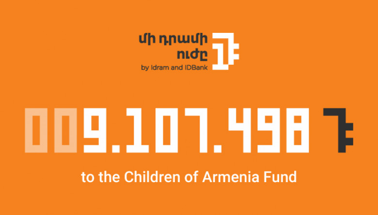 IDBank and Idram have summed up the results of the next program of the “Power of one dram” initiative: the entire amount of “one drams” collected in May and June of this year, 9,107,498 drams, was transferred to the “Children of Armenia” fund.