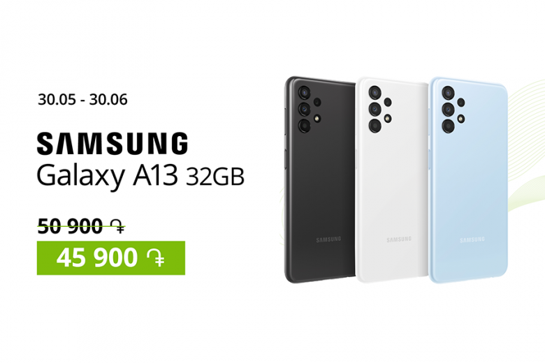 Until June 30 Samsung Galaxy A13 32 GB smartphone can now be acquired from Ucom sales and service centers as well as from Ucom’s online shop at just 45900 drams instead of the previous 50900. It is available in light blue and black colors.
