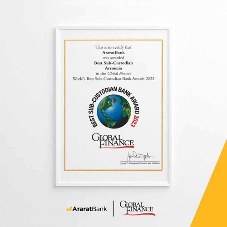 For the third year in a row, AraratBank was recognized as the Best Sub-Custodian Bank in Armenia by the professional team of the premium international magazine Global Finance.