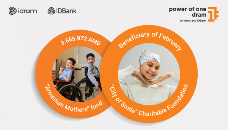 IDBank and Idram sum up the January program of the Power of One Dram initiative. The amount gathered during January, AMD 3,665,972 was directed to the "Armenian Mothers" charity fund.
