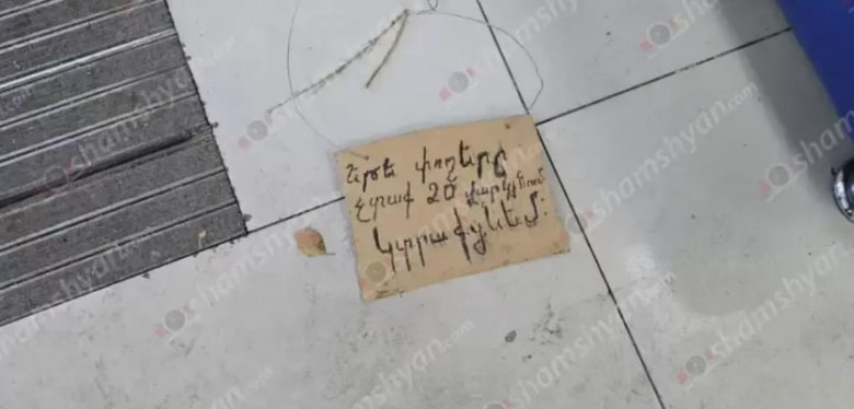 В этот понедельник в Ереване был зафиксирован громкий в криминальном плане случай: один человек в маске и с оружием ворвался в отделение одного из банков и потребовал деньги, угрожая надписью: «если вы не отдадите деньги, взорву через 20 секунд». Затем данный человек похитил из банка сумму, превышающую 1 миллион драмов. Но самое смешное, что вечером того же дня распространилась новость о том, что совершивший противоправное деяние уже покинул территорию Армении через контрольно-пропускной пункт Баграташен.