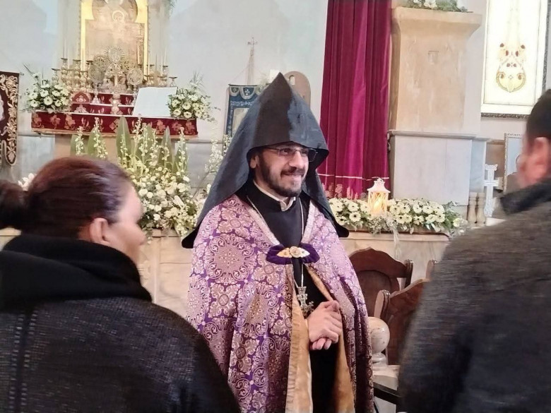 Новый местоблюститель главы Масиацотнской епархии Армянской Апостольской Церкви архимандрит Рубен Заргарян проводит воскресную Святую Литургию в церкви Сурб Акоп в Арарате.