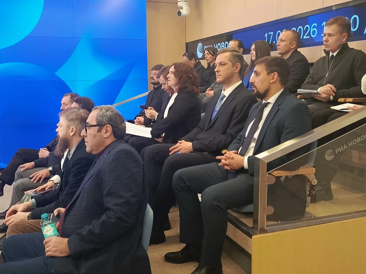 Мероприятие проходит на площадке МИА «Россия сегодня», в зале - представители Управления Президента РФ, Государственной Думы, МИД России, научного и образовательного сообщества.